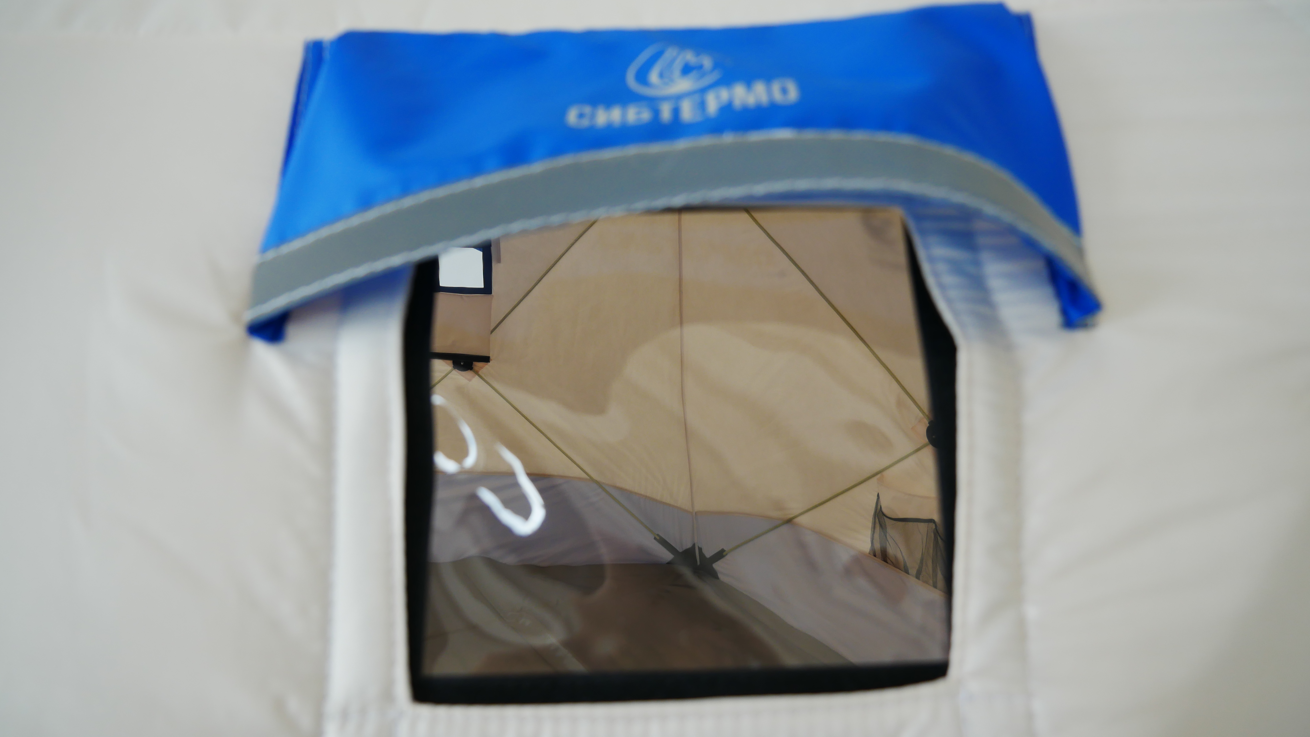 На одной из сторон палатки есть отверстие с клапаном и вставкой из негорючего материала для выхода трубы автономного обогревателя.